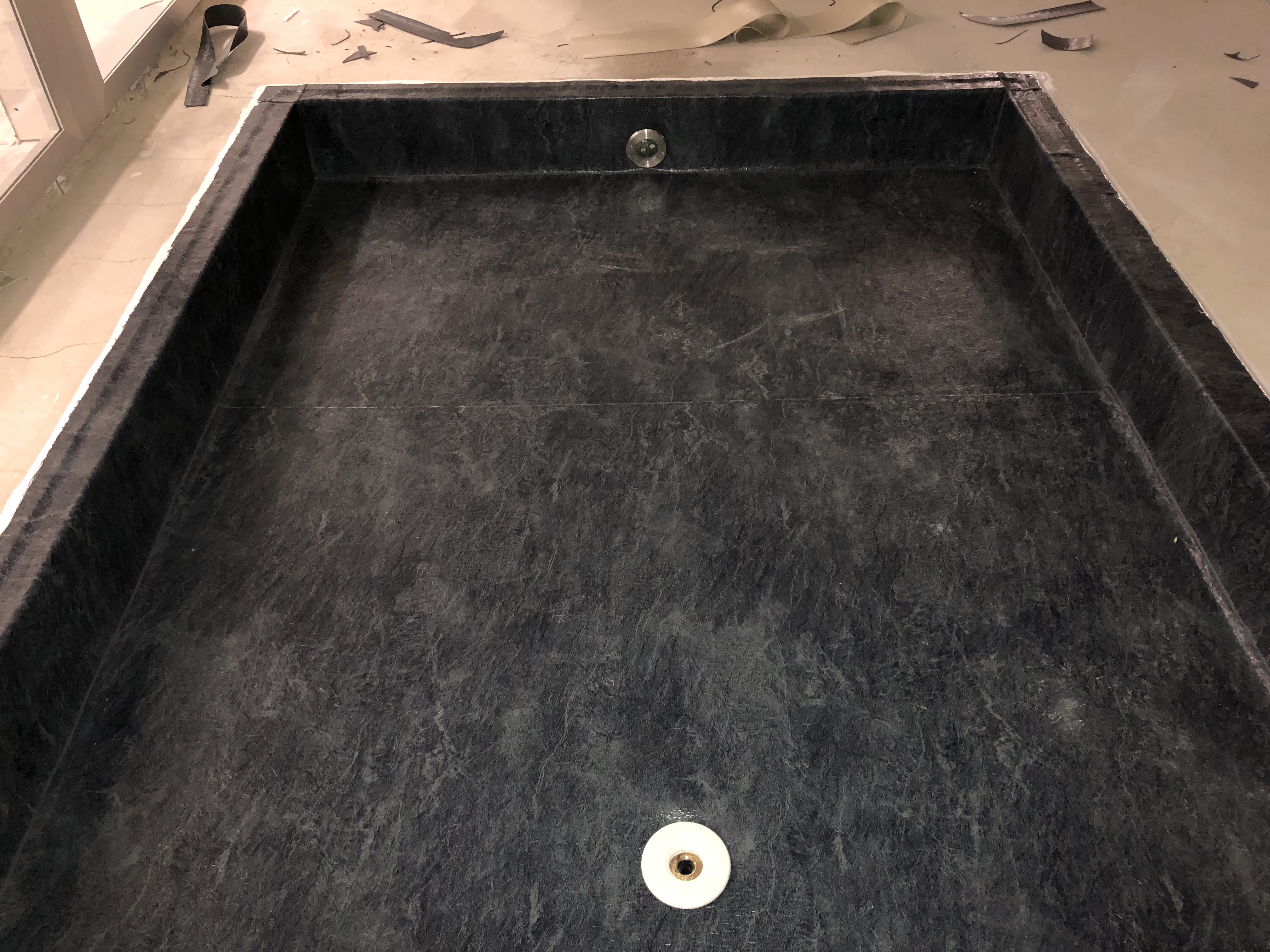Piscina desbordante con lámina armada de piscina Renolit Alkorplan 2000 azul clarito con 15 años de garantía en estanqueidad y tres años en color. IMPERSOLANERAS